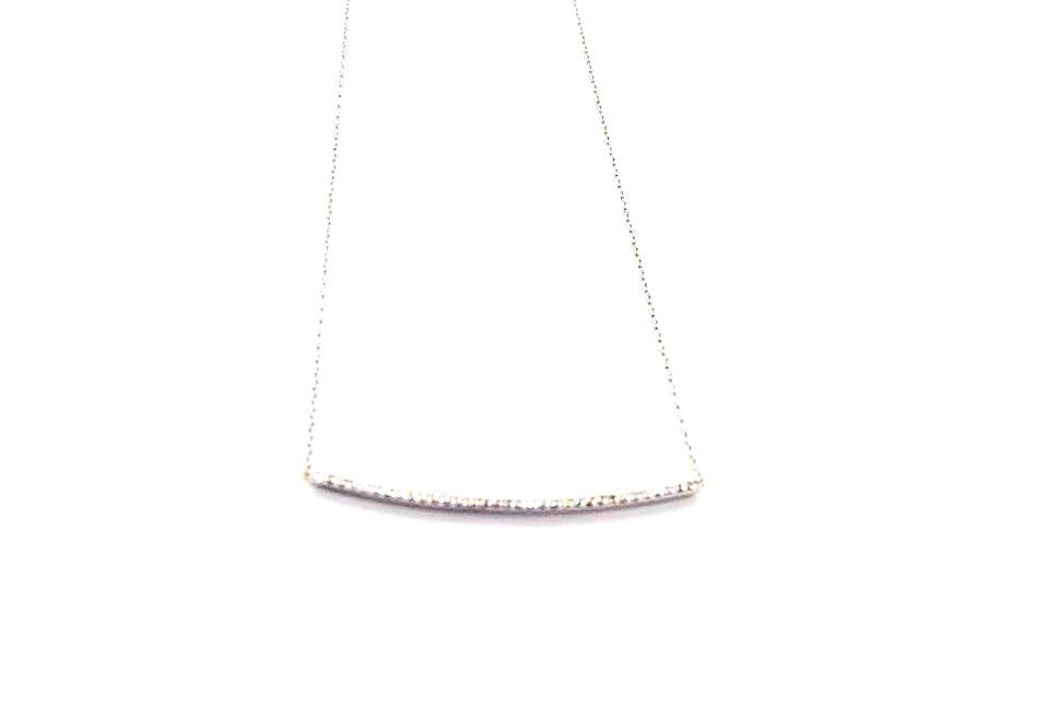 14K Kismet Bar Necklace. Available in short, medium and large (diamond bar). Comes in either white, champagne or black diamond. Also available in white gold upon request. Pricing listed is for short (diamond bar) white gold, white diamond. (Price for Champagne or Black diamond short $750.00).